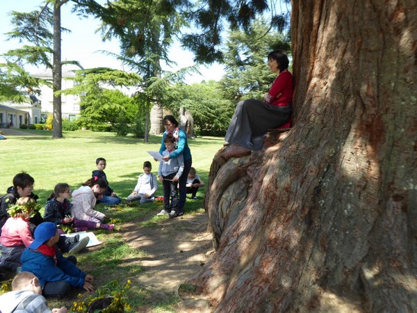 - Trois guides partagent leur regard sur les plantes aux élèves : une botaniste, une conteuse et un illustrateur naturaliste.